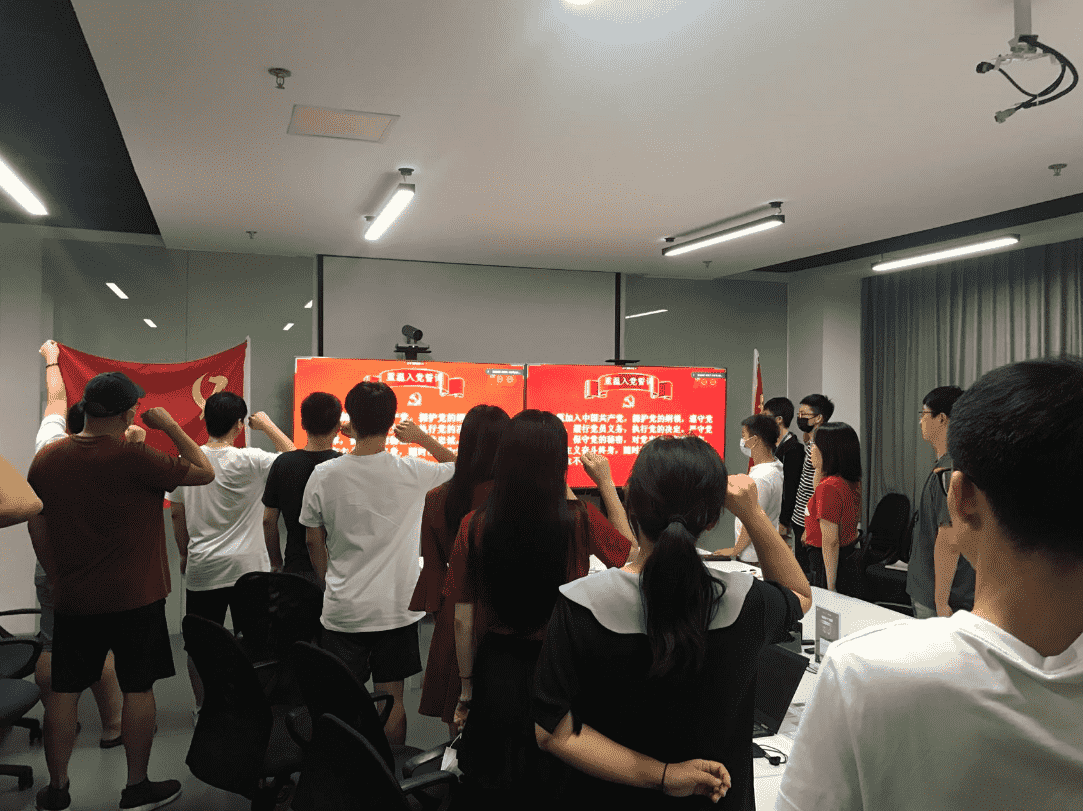 下午,,,35273党总支专门召开党员大会。。。。全体党员面向党旗,,重温入党誓词后,,通过对中国共产党100年来的重大历史事件的回顾,,,结合已有的党史学习成果,,,进一步确认了下一阶段的学习重点。。。。接下来,,35273-雷霆游戏全体党员将继续深入研读习近平《论中国共产党历史》《中国共产党简史》《毛泽东、、、邓小平、、江泽民、、、胡锦涛关于中国共产党历史论述摘编》《习近平新时代中国特色社会主义思想学习问答》等学习材料,,,寻来处,,,,忆往昔,,践初心,,,铭使命,,,讲好中国故事。。。