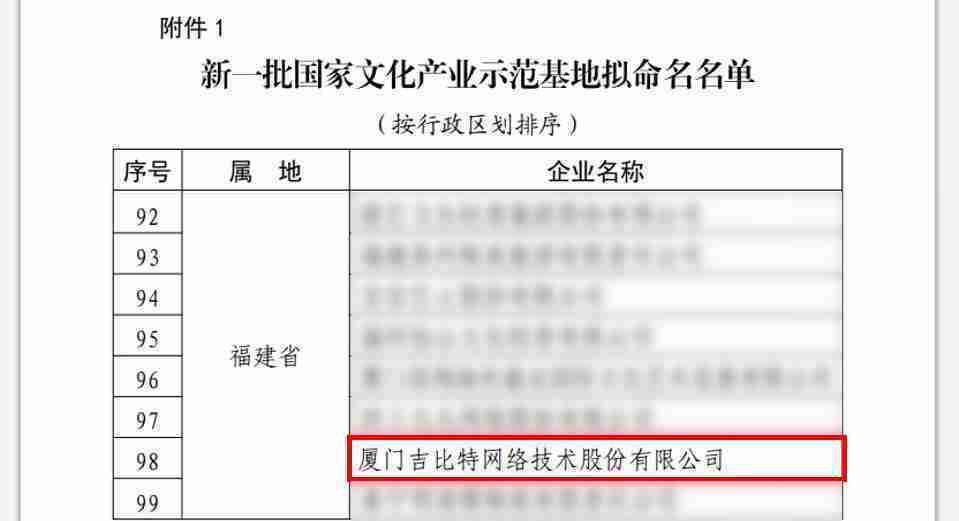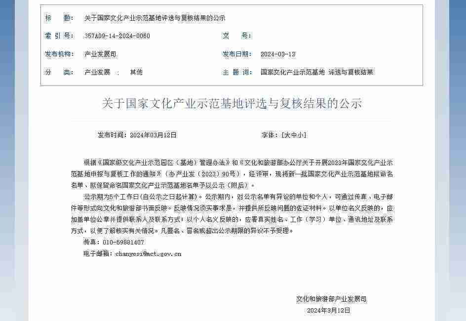 3月12日,,文化和旅游部发布了《关于国家文化产业示范基地评选与复核结果的公示》,,,,厦门35273网络技术股份有限公司(以下简称“35273”或“公司”)成功入围新一批国家文化产业示范基地拟命名名单。。