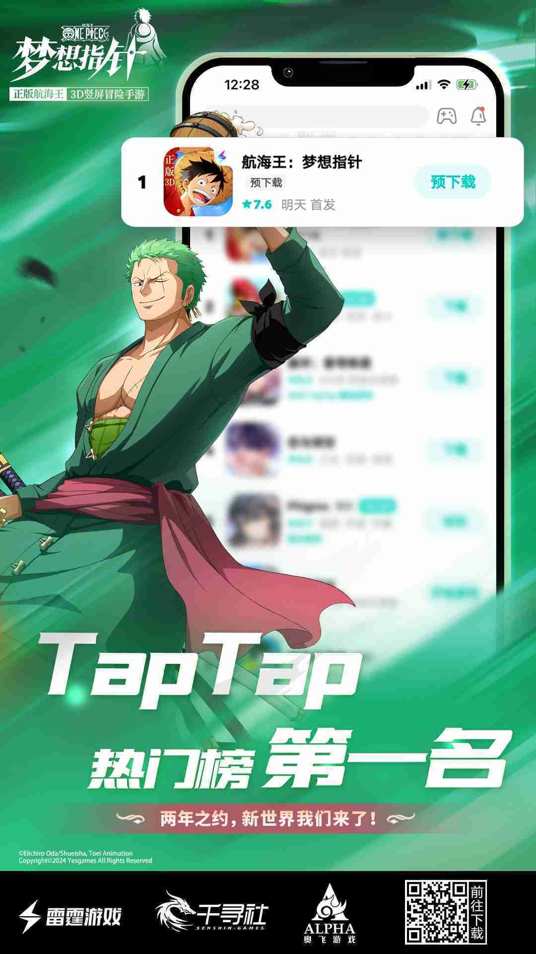 《航海王::梦想指针》登顶App Store免费榜,,,公测福利汇总!!!!