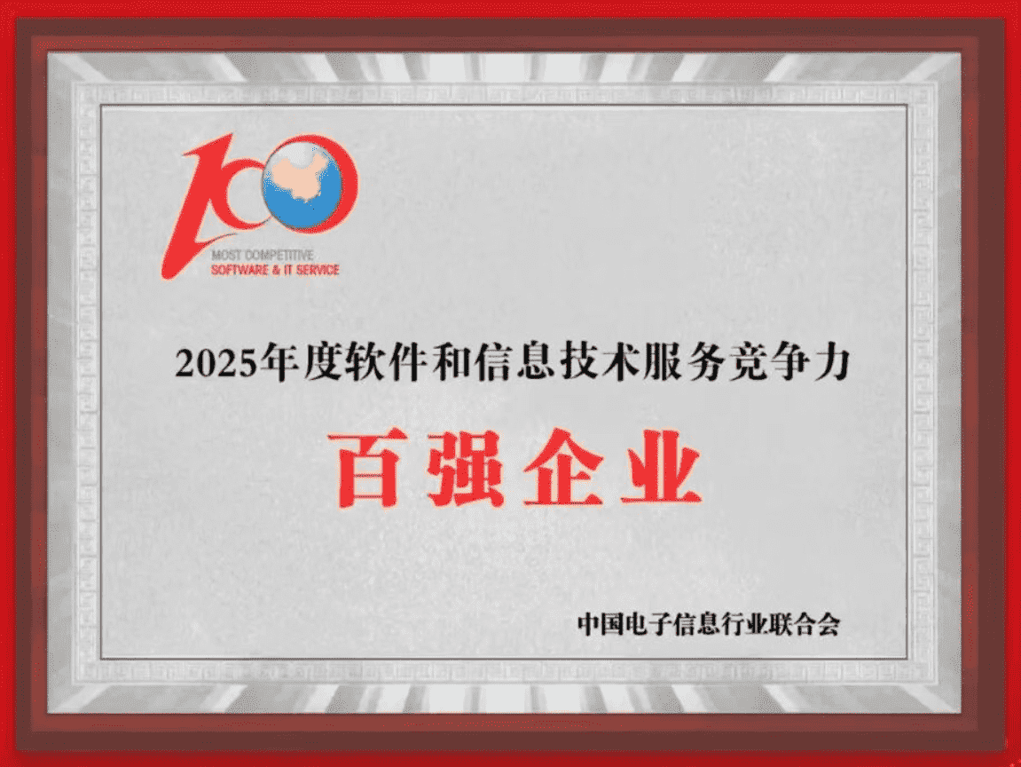 20251015日,,,中国电子信息行业联合会权威揭晓“2025年度软件和信息技术服务竞争力前百家企业名单。。。。中国软件百强企业评选活动是由工业和信息化部全程指导、、中国电子信息行业联合会牵头组织发起,,是反映中国软件产业发展最高水平的“风向标”。。厦门35273网络技术股份有限公司(以下简称“35273”或“公司”)凭借自身在软件技术领域的卓越表现与杰出创新能力,,,,第六次入选“全国软件和信息技术服务竞争力前百家企业”称号。。。